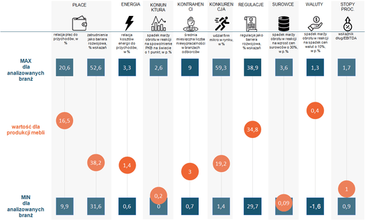 Wrażliwość na ryzyka branży meblarskiej na tle innych, uwzględnionych w raporcie branż